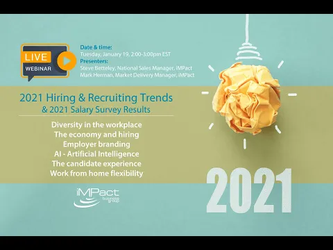 - In summary, there are a large number of currently working employees currently looking, or planning to look for new opportunities. And we’re also seeing a good amount of hiring managers saying they are planning to be doing some hiring in 2021. Whether someone is a job seeker looking for new opportunities or career change, or an employer anticipating hiring needs (full-time, contract, part-time), iMPact can help connect qualified candidates with top job opportunities.